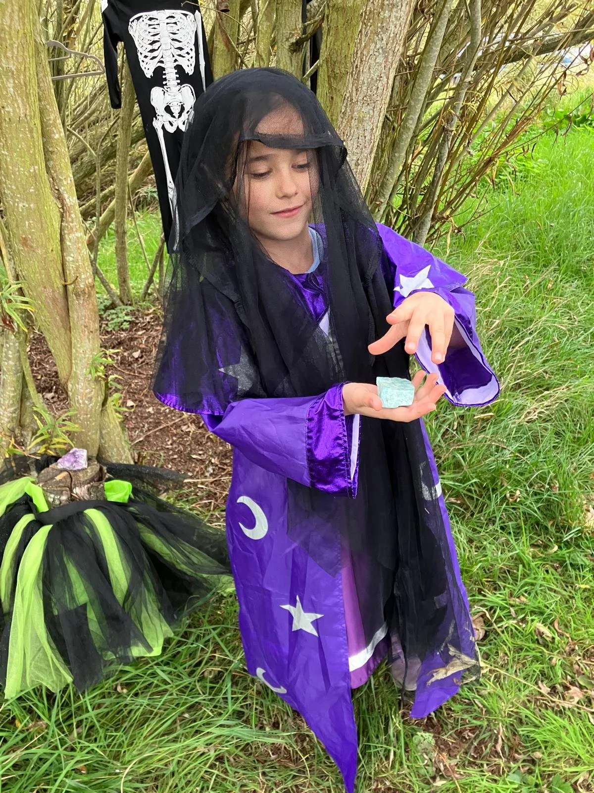 Our peaceful Willow Dome, usually reserved for meditation and mindfulness, was reimagined as a witch’s wardrobe — complete with broomsticks, potion jars, and mysterious cloaks. It became the perfect hideaway for dressing up, storytelling, and gathering ingredients for our witches’ brew (think pinecones, feathers, and glittery leaves!).